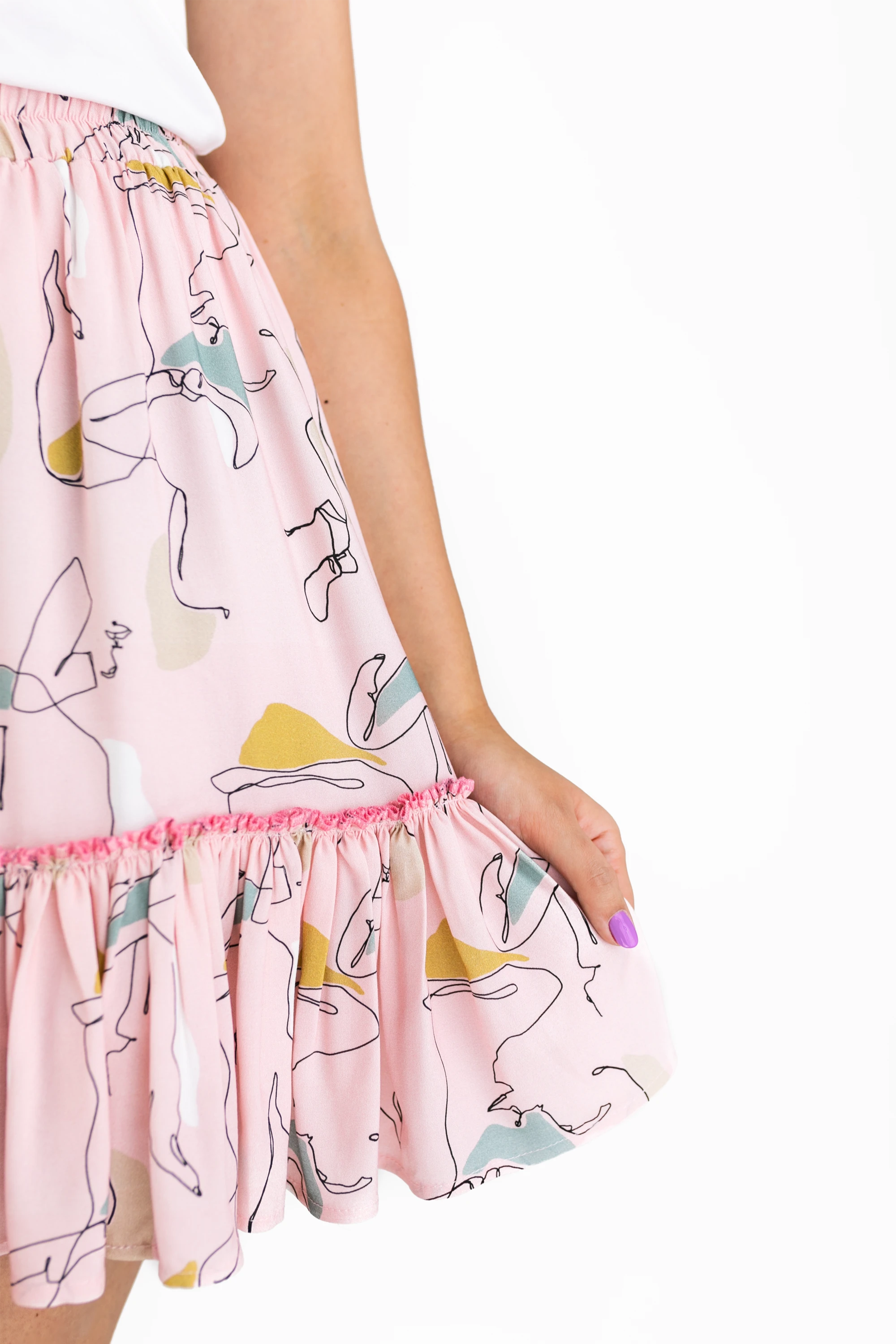 Gumka w pasie zadba o podkreślenie talii, a marszczona falbana doda Ci wdzięku na każdym kroku. Mini Sketches stanowi wspaniałą podstawę do letnich stylizacji.