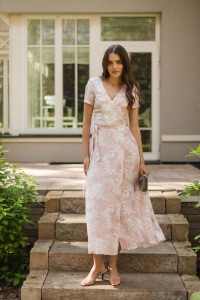 Sukienka Kopertowa Maxi to propozycja uszyta z delikatnej wiskozy o przepięknym kwiecistym princie. Sukienka posiada kopertowy krój z szerokim i długim paskiem idealnie podkreślającym talie. Dekolt w serek efektownie eksponuje kobiece kształty i wydłuża sylwetkę. Rozporek na przedniej nodze ciekawie przełamują formę sukienki, nadając jej lekkości i powabności przy każdy kroku. Krótkie rękawki z marszczeniem na szczytach ramion dodają uroku. W szwach bocznych znajdziesz uwielbiane przez Ciebie kieszenie, możesz wrzucić do nich drobne, kluczyk od auta, albo po prostu schować ręce, by poczuć się na luzie ;)