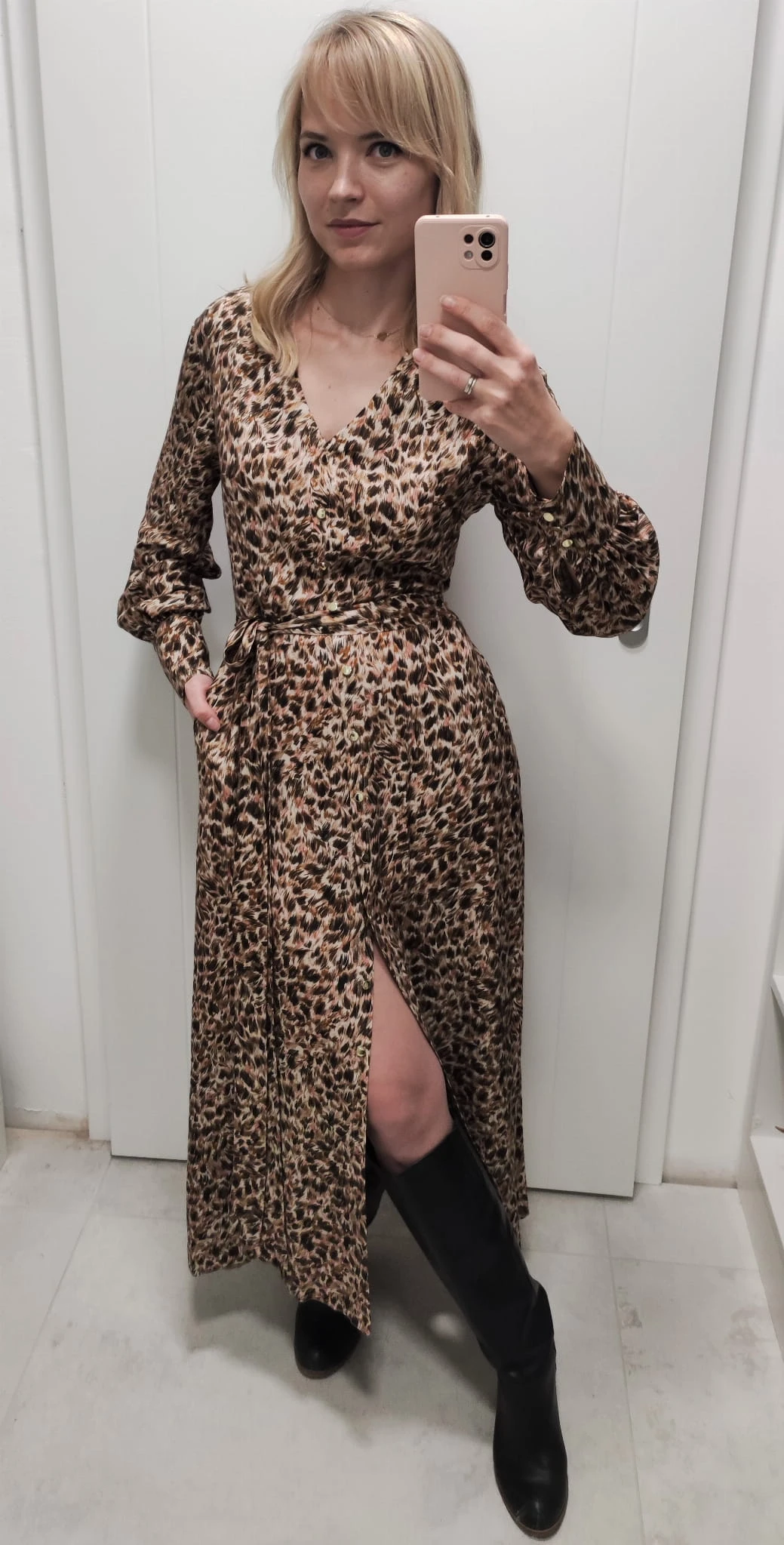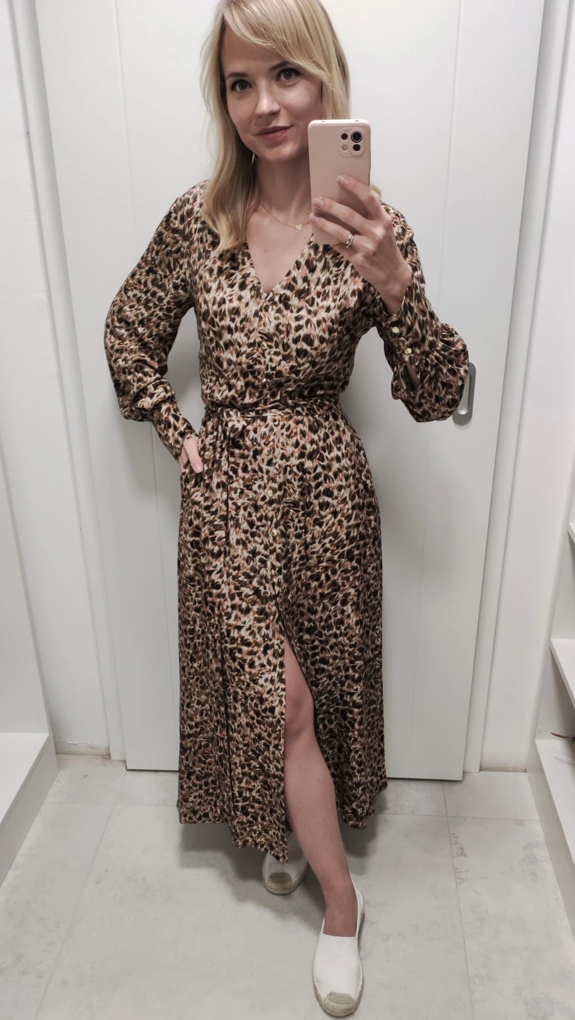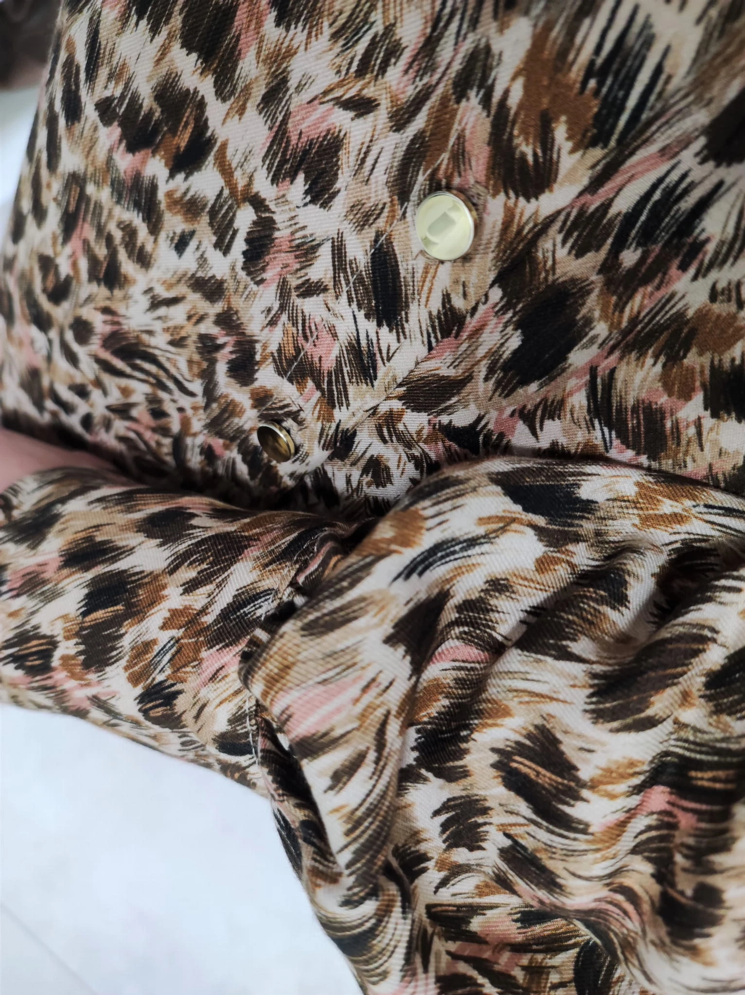 Sukienka Koszulowa Maxi Cętki uszyta jest z przemiłej i otulającej ciało wiskozowej tkaniny, w kolorach ciepłego brązu w przepięknym zwierzęcym princie.