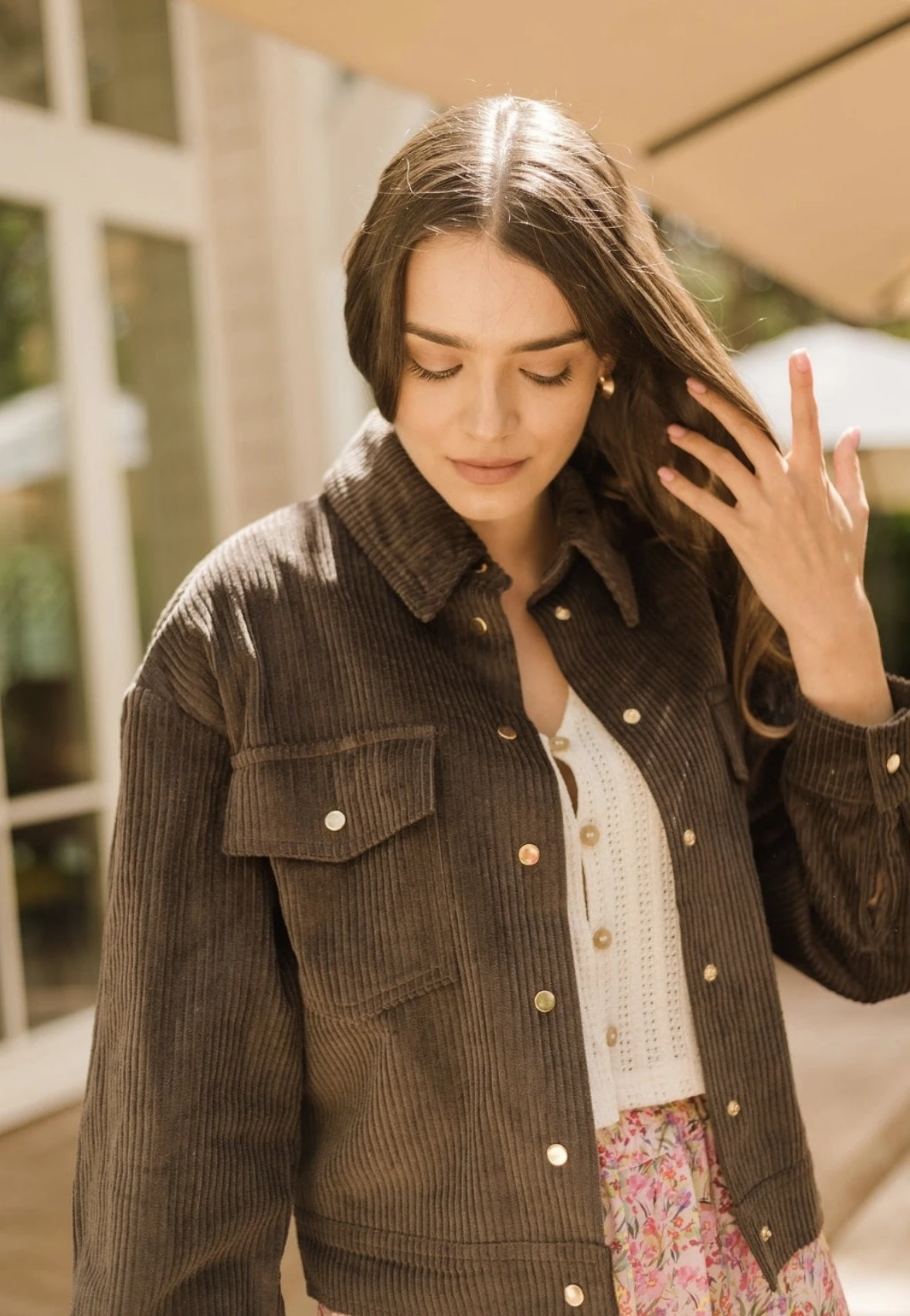 Kurtka uszyta została z mięsistego i aksamitnego sztruksu, który otuli Twoje ciało i sprawi, że będzie Ci w niej szalenie przyjemnie i wygodnie.