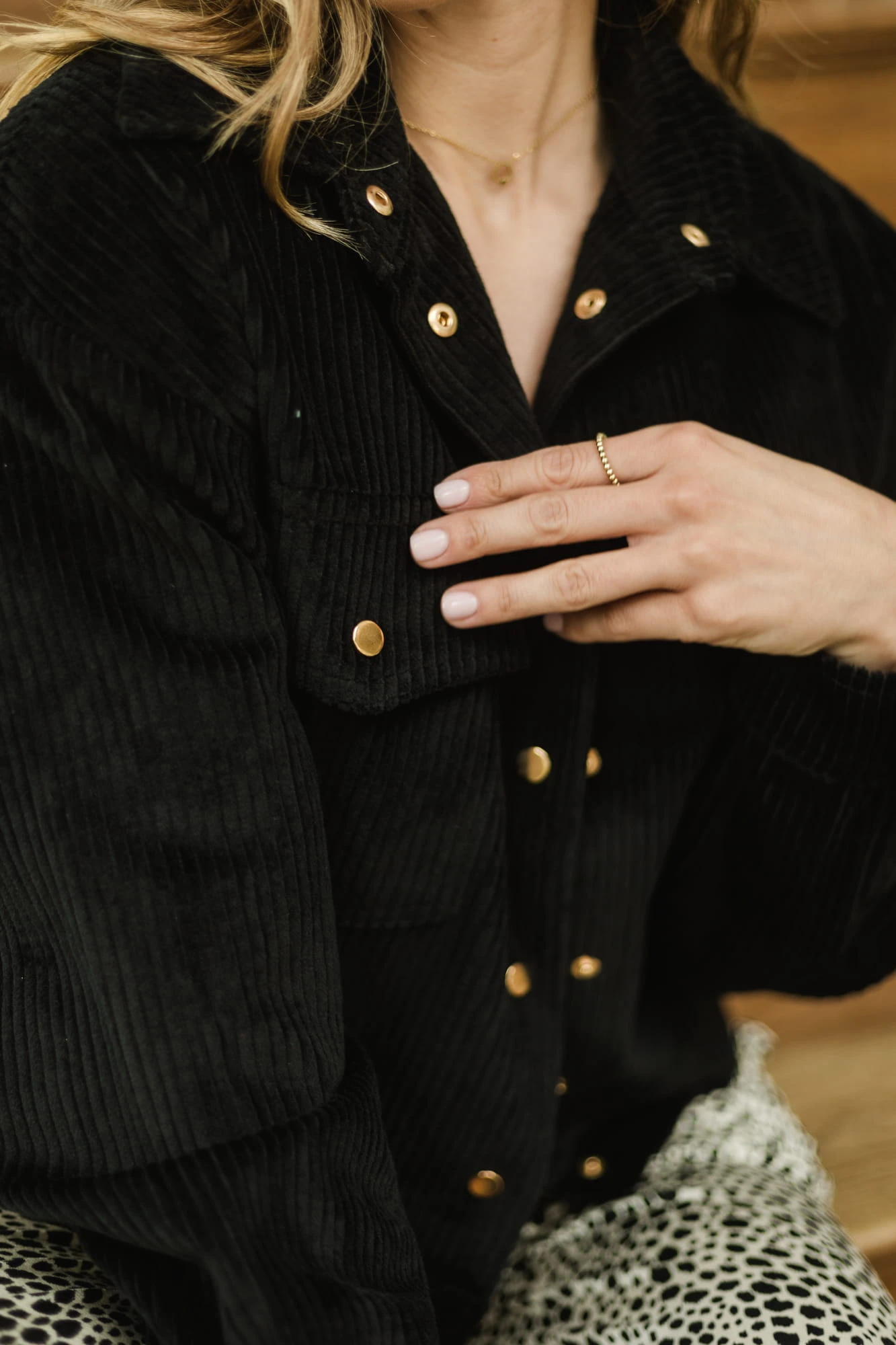 Kurtka uszyta została z mięsistego i aksamitnego sztruksu, który otuli Twoje ciało i sprawi, że będzie Ci w niej szalenie przyjemnie i wygodnie.
