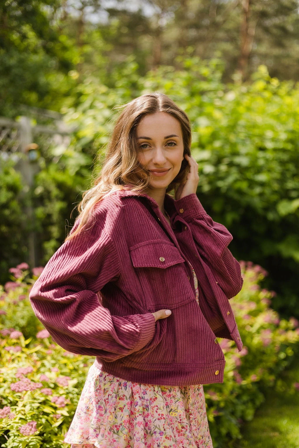 Kurtka uszyta została z mięsistego i aksamitnego sztruksu, który otuli Twoje ciało i sprawi, że będzie Ci w niej szalenie przyjemnie i wygodnie.
