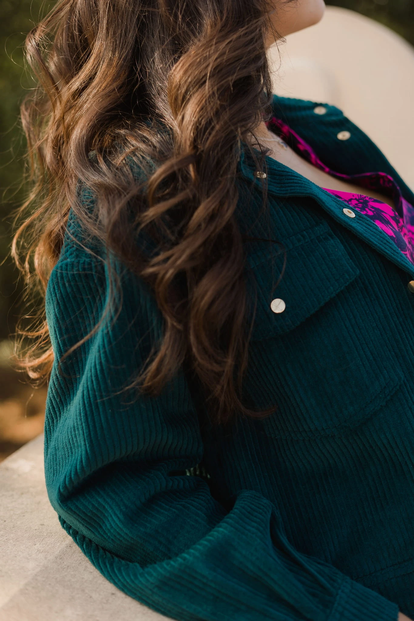 Kurtka uszyta została z mięsistego i aksamitnego sztruksu, który otuli Twoje ciało i sprawi, że będzie Ci w niej szalenie przyjemnie i wygodnie.