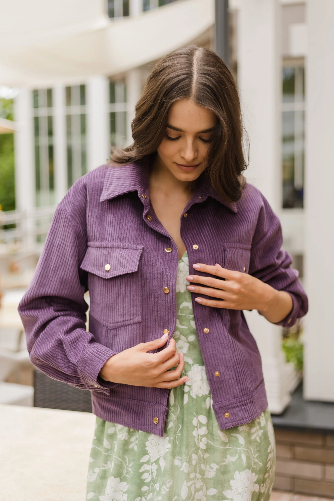 Kurtka uszyta została z mięsistego i aksamitnego sztruksu, który otuli Twoje ciało i sprawi, że będzie Ci w niej szalenie przyjemnie i wygodnie.