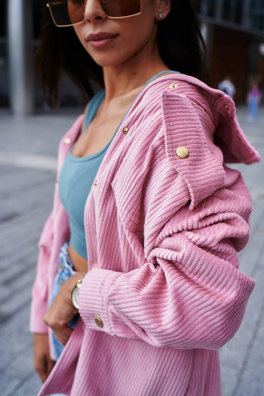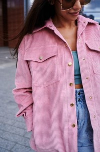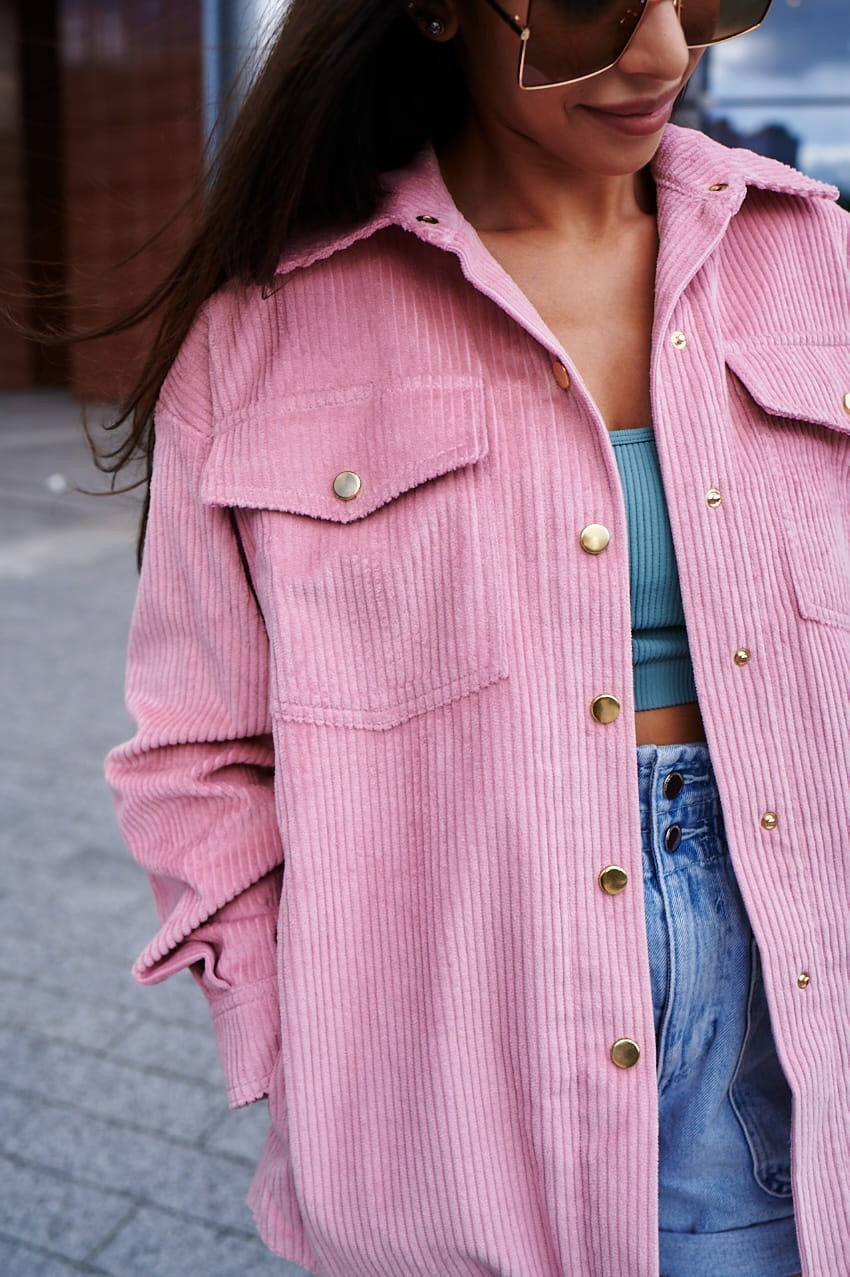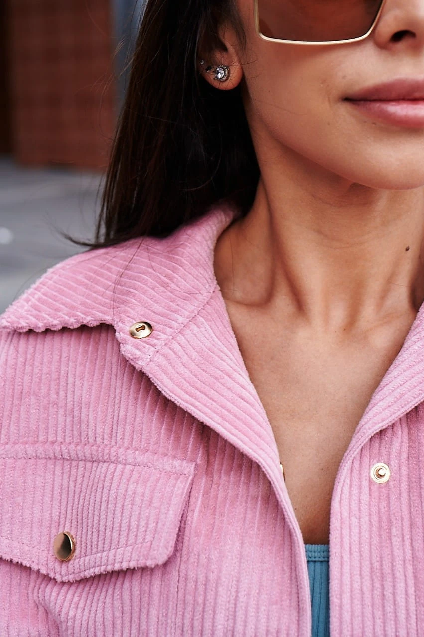 Kurtko- bluza uszyta została z mięsistego i aksamitnego sztruksu, który otuli Twoje ciało i sprawi, że będzie Ci w niej szalenie przyjemnie i wygodnie. Niezwykle kobiecy i plastyczny pudrowy róż to kolor, który zestawisz z większością rzeczy w swojej szafie. Rewelacyjnie wygląda po prostu w basicowym zestawie, czyli dobrana do jeansów oraz jasnej koszulki, wiele przy niej nie trzeba.